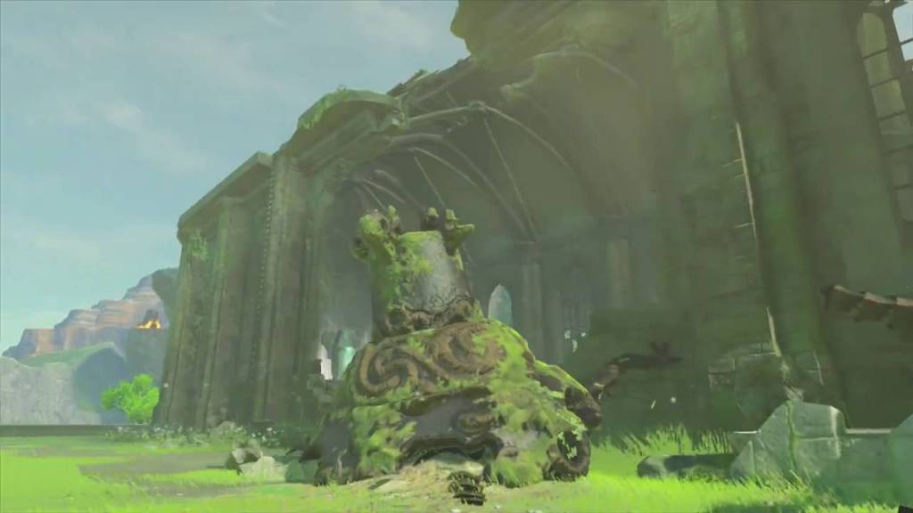 Quel est le but de ces vestiges ? De le rendre crédible et faire en sorte que, malgré le récit non-linéaire propre à BotW, le joueur puisse quand même avoir l’impression de traverser une histoire qu’on lui raconte sans l’interrompre dans sa liberté d’explorer sans entraves. Le récit est contenu dans l’exploration et la contemplation et le message qu’on vise à nous transmettre est d’abord celui d’une rupture, d’une catastrophe brève mais radicale.