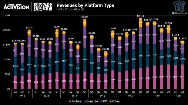 Activision-Blizzard est le 5ème plus gros éditeur de jeu vidéo au monde avec un chiffre d’affaires de plus de 8 milliards d’euros et plusieurs licences reines du secteur, dont le très rentable Call of Duty et ses 300 millions de copies vendues[3].